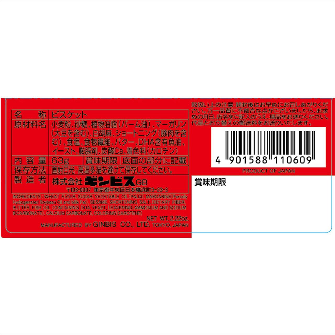 Each name is printed in English in 46 animal type biscuits.