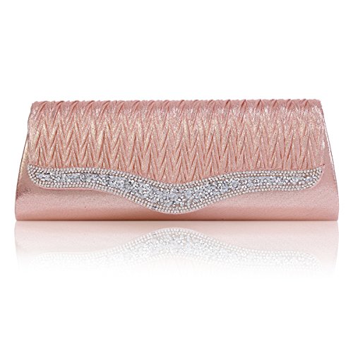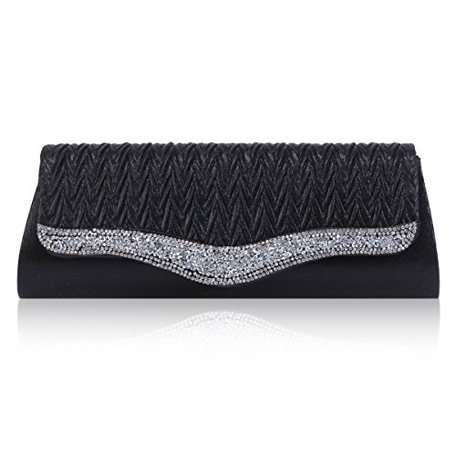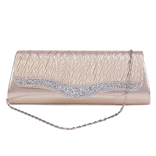 Glistening crystal creates a multi-dimensional shine across this embellished clutch bag.The evening bag features sparkling crystals on the front and back of this chic smooth clutch and has snap closure .This clutch offers enough room for your cell phone, lipstick,compact mirror, or one or two other essential items, and a small pocket inside.A detachable chain link shoulder strap offers a versatile carrying option when you want to keep your hands free.Measurement is app 27x9.5x4.5cm (10.62x3.74 x1.77 in),Chain 47.24" (120cm).Feature