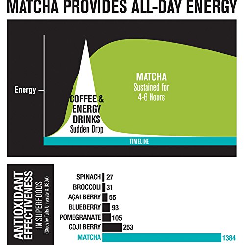 Want Long-Lasting Energy With No Jitters? Due to FDA regulations, we can't tell you that Epic Matcha green tea powder will give you 4 to 6 hours of sustained energy with no coffee crash or jitters. But our customer reviews do speak volumes. Matcha also contains 10-15x the nutrients of traditional green, white, black, oolong, rooibos and yerba mate teas.