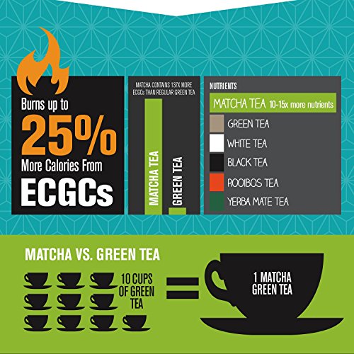 This form of tea has 15 times more nutrients than regular loose leaf green tea. Fighting the battle of the bulge? Matcha contains a potent antioxidant called ECGC, thought to ignite your metabolism and burn up to 40% more calories.*