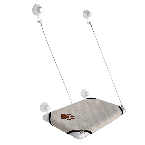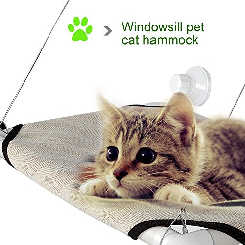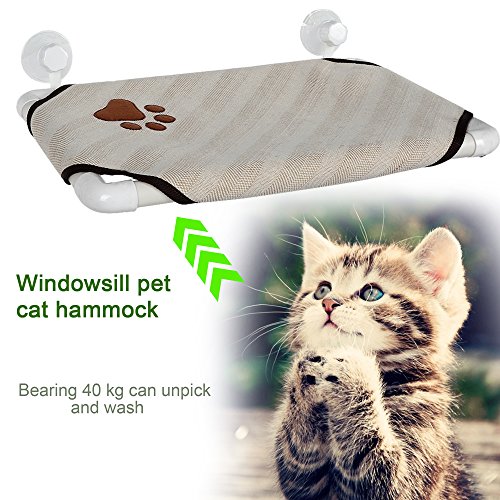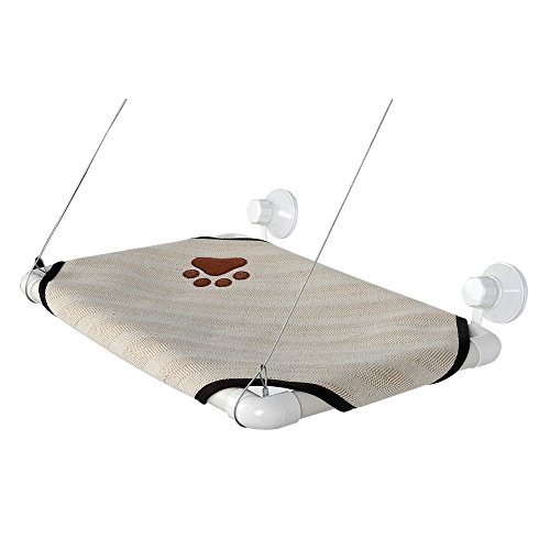 Homdox Cat Window Perch Homdox window cat bed provides your cat a front row view of nature, weather, people and more without taking up valuable floor space, provides your cat a view outside a warm place in the sun. Our window perch for cats is perfect for cats that like to bask in the warm sun or active cats that desire a high vantage point. Product Features: Material: Plastic, Knitting Color: Beige Size: 45.5 x 30cm/17.7 x 11.7inch (L x W) Thickness: 2.5cm/ 1.0inch Each Line Length: 60cm/41.4inch Net Weight: 0.6kg Capacity: 20kg Quantity: 1 PC Features: Washable, Removable Type: Cat Cot Applications:Indoors Suit For: Pet Cats Mount Place: Window Shape: Square Soft and comfortable Package Content: 1 x Cat Window Mounted Bed, 4 x Suckers Get to know us: We created Homdox with a single goal in mind: to start with affordable, high-quality gear and ending with a commitment to 100% user satisfaction. After all, we're customers too. 0
