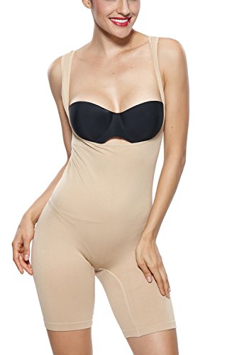 -. Binding : Apparel -. Brand : Khaya -. Department : womens -. Feature : Open-bust design. Wear-your-bra and mid-thigh shapewear. There is an opening on the crotch. / With this shaper under your outerwear, your hips are lifted and your figure looks smooth. / It also works on your waist. / This type of straps are more comfortable. / Choosing two size down may will be tight and good for shaping. We sest that the shaper should be worn from your feet up, then pull it up gently and slowly to the right height, finally adjust it to be comfortably fit. -. Model : KA17741 -. ProductGroup : Apparel -. ProductTypeName : UNDERWEAR -. Title : Khaya Women's Bodysuits Mid-thigh Shapewear Wear-Your-Bra Body Shaper