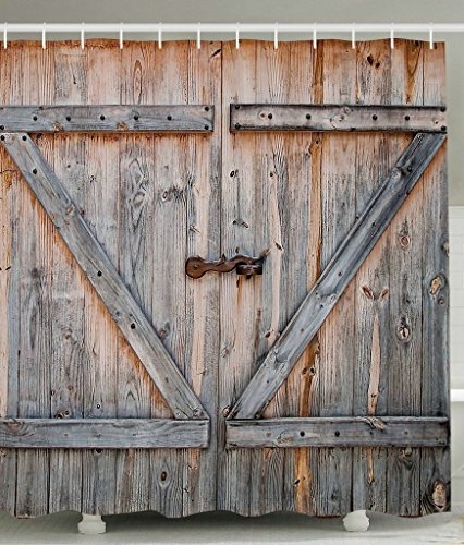 Kipten Rustic Country Barn Wood Door, Old Wooden Garage Door Digital Printing Polyester Antique Theme Shower Curtain with Adjustable Hook 72 x72 Inch