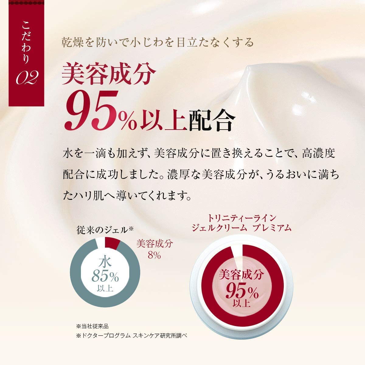 全成分 : シラカンバ樹液、BG、グリセリン、スクワラン、水添レシチン、メチルグルセス-10、DPG、ベタイン、セラミド2、ラウロイルグルタミン酸ジ(フィトステリル/オクチルドデシル)、ラウロイルグルタミン酸ジ(オクチルドデシル/フィトステリル/ベヘニル)、ジメチコン、ヒドロキシプロリン、アセチルヒドロキシプロリン、ジパルミトイルヒドロキシプロリン、アスパラギン酸メチルシラノールヒドロキシプロリン、ツボクサエキス、加水分解コラーゲン、アセチルヒアルロン酸Na、加水分解ヒアルロン酸、ヒアルロン酸ジメチルシラノール、ヒアルロン酸Na、グリチルリチン酸2K、マルチトール、ダイズステロール、PEG-32 、イソステアリン酸、バチルアルコール、イソステアリルアルコール、ポリクオタニウム-61、PVP、セリン、グリシン、アラニン、シトルリン、トレオニン、ヒスチジン、アスパラギン酸、バリン、アルギニン、イソロイシン、リシンHCl、ロイシン、グルタミン酸、プロリン、カンゾウ根エキス、オトギリソウエキス、クチナシエキス、ゼニアオイ花エキス、水酸化K、1,2-ヘキサンジオール、ペンチレングリコール、フェノキシエタノール、PEG-60水添ヒマシ油、セスキイソステアリン酸ソルビタン、HEDTA-3Na、ポリメタクリル酸メチル、(アクリレーツ/アクリル酸アルキル(C10-30))クロスポリマー、カルボマー、キサンタンガム