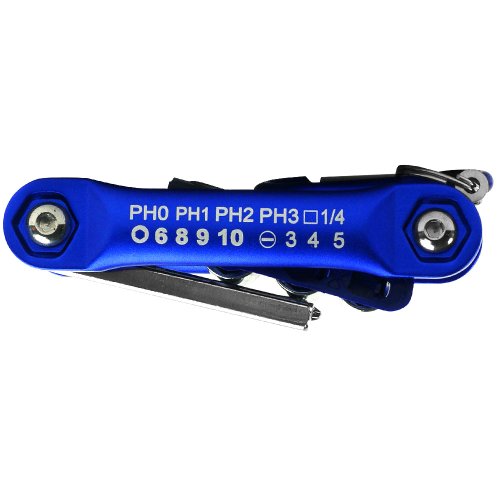 - Feature : Features include: Stainless Steel construction 3, 4, 5 Flathead Screwdrivers 0, 1, 2, 3 Phillips Screwdrivers / 1/4-Inch Socket Extension6mm, 8mm, 9mm, 10mm Sockets / Dimensions folded: 4 x 1.75 x 1.25-InchEach Driver is Just Over 1.75-Inch Long / Carabineer Clip for Easy AccessIncludes Retail Packaging