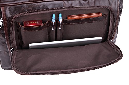 This is Genda 2Archer Leather Business Travel Briefcase Shoulder Bag Fit 17-inch Laptop. Please make sure the size of this item is suitable for you before placing the order. Also please note that the color of the actual item may be slightly different from the photos due to lighting and other factors. Product Specification: Color: Coffee Size: 44cm(length)*15cm(depth)*31cm(height) / 17.3"x5.9"x12.2", fits 17inch laptop Material: 100% genuine leather Gender: men or teen boys Zipper closure for easy access, removable and adjustable padded shoulder strap Can hold your laptop, iPad, A4 books, wallet, phone, pens or your clothes etc Style: Briefcases,business bag,office bag,shoulder bag,laptop bag Package Content: 1PC * Briefcase 0
