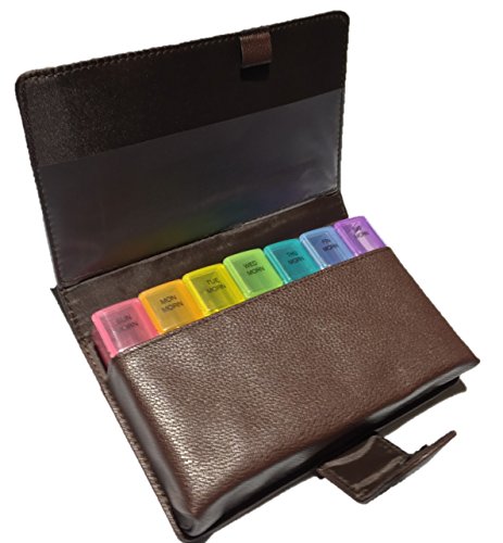 Premium fashion PU Leather carrying booklet case with secure MAGNATIC snap closure makes it easier for seniors to open and close the binder. Travel Pill Organizer is compact ideal for travel | Fits in purse, bag, briefcase.