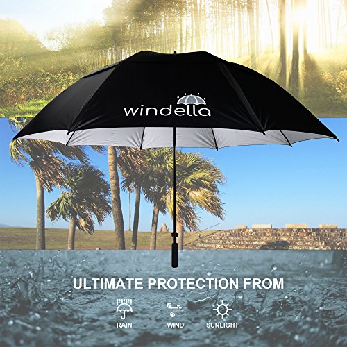 -. Feature : ☂ STOP WASTING MONEY ON CHEAP DESIGNS ☂ - Tired Of Buying And Throwing Away Cheap Quality Golf Umbrellas? Why Carry A Flimsy And Bland Umbrella, When You Can Have A High Quality And Well-Designed Windella Umbrella Made From Premium Quality Windproof And UV-Resistant Fabrics. Created With State Of The Art Production Processes And Strict Quality Control, This Will Likely Be The Last Umbrella You'll Ever Own. / ☂ EXTRA LARGE 68 INCH SIZE ☂ - This Black Golf Umbrella Features A Double Canopy Design, One Handed Auto Open With An Easy Grip Handle With Soft Rubber Coating. A Sturdy Fiberglass Shaft & Ribs Ensures A Well Built Sturdy Product And Will Protect You From Rain, Wind And Sun For Years To Come. / ☂ WIND TUNNEL TESTED STRONG ☂ - Nearly Unbreakable With Our Sturdy Fiberglass Shaft And Reinforced Ribs And Double Canopy. We Have Tested Our Golf Umbrellas In A Wind Tunnel To Ensure That When We Say Windproof, We Mean It! / ☂ PERFECT GIFT FOR FAMILY & FRIENDS - NOT ONLY FOR GOLFERS ☂ - Your Family And Friends, Men or Women Will Truly Appreciate This Oversize Umbrella For Their Car And Outdoor Travel. Wind Proof, Along With Sun & Rain Protection Make It A Practical Gift For Any Occasion; Birthdays, Holidays, And Anniversaries. / ☂ MULTIPLE USES - GOLF, WEDDINGS AND DOORMAN ☂ - As A Doorman's Umbrella, Expect Wide Smiles From Hotel Apartment Guests After Safely Ushering Them To The Front Door. With Its 68 Inch Arch Span Never Fear That Your Wedding Will Be Ruined By Sun Or Rain. Enjoy Golf With Family And Friends On The Greens! This Large Oversize Golf Umbrella Comfortably Protects 3 Golfers Against Wind, Sun And Rain.