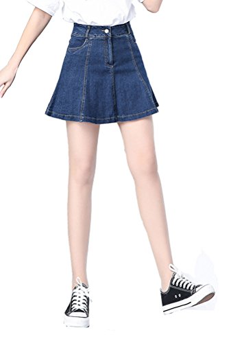 -. Title : HAPPYJP® ハイウエスト aラインスカート ミニスカート スリム効果 濃い色のデニムスカート 大きいサイズ 無地