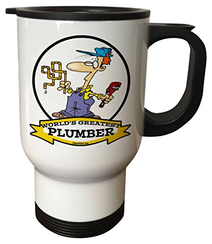 3dRose tm_103449_1 Funny Worlds Greatest Plumber Ii Occupation Job Cartoon Travel Mug, 14 oz, White