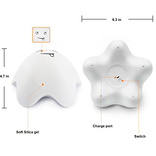 【Safe Material & Tap Control】- Made of safe, odorless and washable soft silicone nursery night light. You can pat, press and hit it, it will back to the original shape. Sensitive Tap Control: Tap the baby lamp's surface to control the color modes, one tap for one color switch, sensitive vibration sensor allows you to control lights at will.