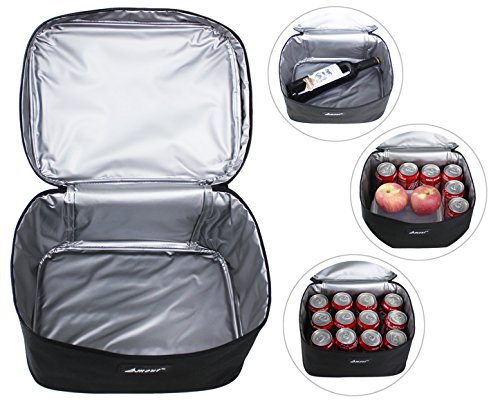 MEAUREMENTS & CAPACITY: The overall dimensions of the lunch Box are L11.5" x W9" x H7.5". The Lunch Box’s maximum capacity is 12L, spacy enough to store 12 tins of coke (330ml),1 bottles of wine or meals for 2-3 persons.