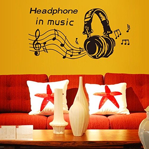 Easma Wall Decal Removable Vinyl Wall Stickers for Nursery Boys Teens Room Playroom (Headphone)