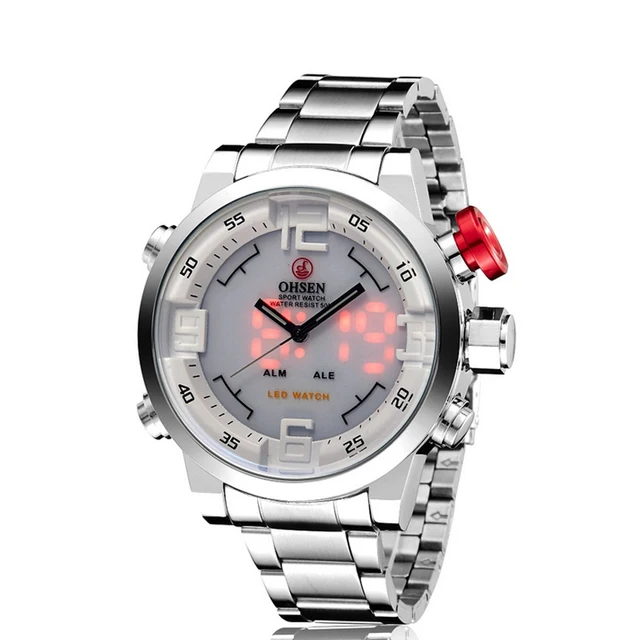 | [해외] 남성 시계 군사 LED 남성 시계 최고 브랜드 전체 스틸 스포츠 시계 다이버 쿼츠 손목 시계 다기능 시계 Relogio |