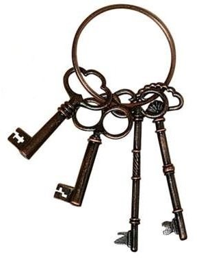 - 4 antique-looking skeleton keys on a ring.