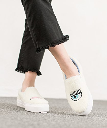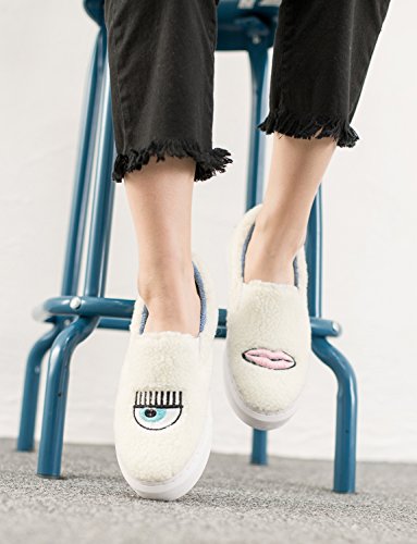 Product Description Soft furry fashion slip on by AnnaKastle. This platform sneaker features vegan leather faux shearling upper, round toe and eye lips embroidered detail. Pair it with your favorite pants or skirts for stylish and casual look. 0