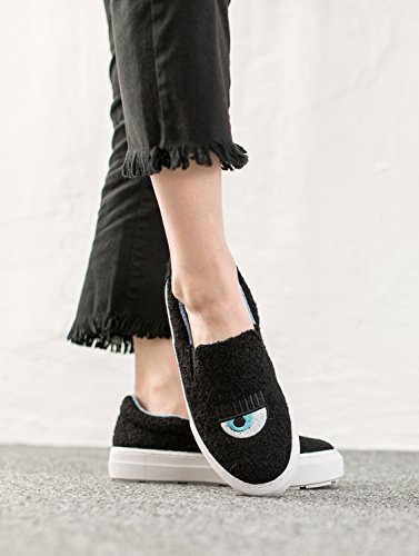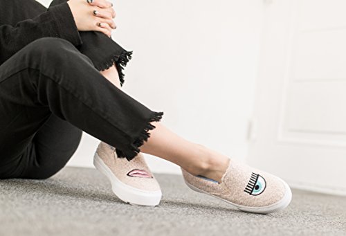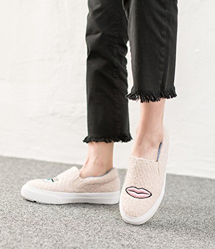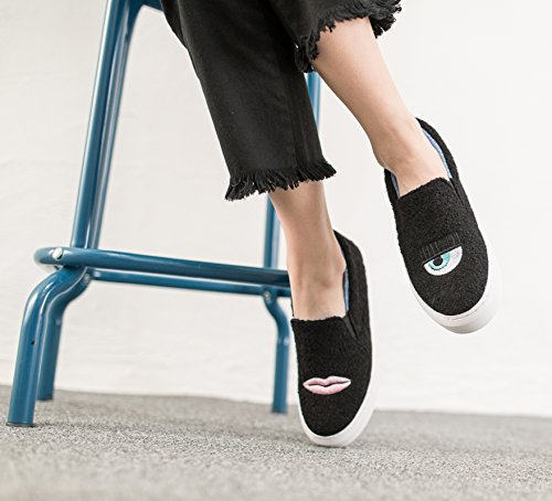(AnnaKastle)/Women's/Loafers Slip-Ons/DIRECT FROM USA/AnnaKastle Womens Wink and Lips Shearling Fashion Skate Sneakers Slip On