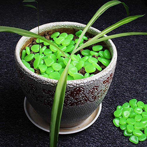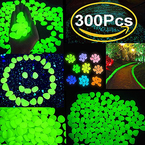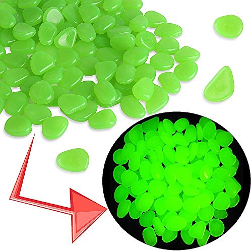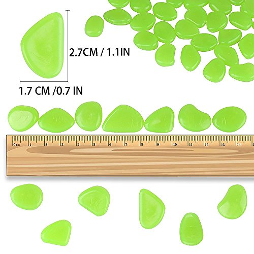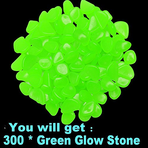 Outee 300 PCS Glow Pebbles Stones Glow in the Dark Stones Garden Decor Glow Gravel Stones for Garden Walkway, Man-made, Green