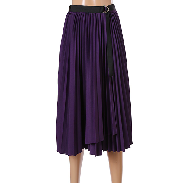 톤 다운 된 퍼플 컬러에 아코디언 주름장식으로 포인트를 준 미디 스커트 입니다. 랩 스타일과 언발의 길이감이 트렌디함을 어필해 줍니다.