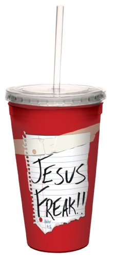 Tree-Free Greetings cc34267 Jesus Freak: 1 Peter 4:16 Artful Traveler Double-Walled Cool Cup with Reusable Straw, 16-Ounce