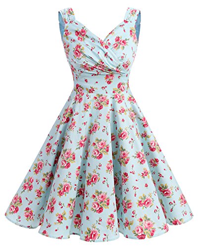 Bridesmay Damen Vintage 50S Retro Partykleid Rockabilly Knielang Cocktailkleid