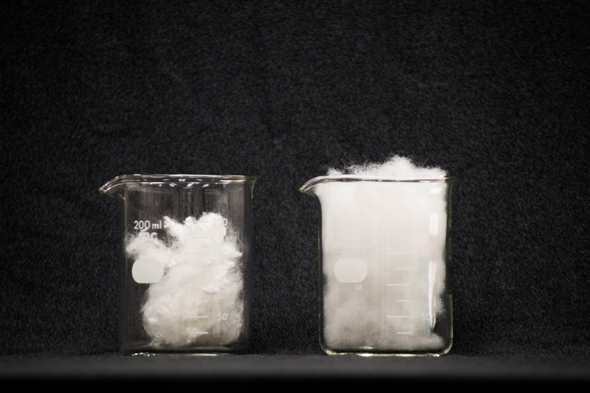 I loosened firmly compressed stock cotton to a volume more than 5 times and finished it with all the softness, hardness and repulsion power.