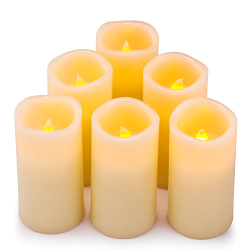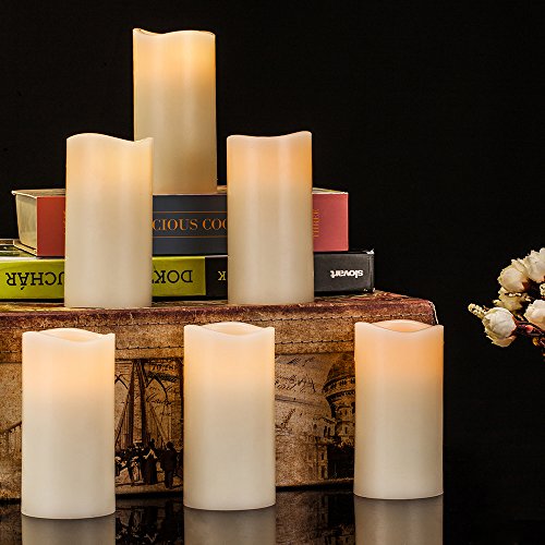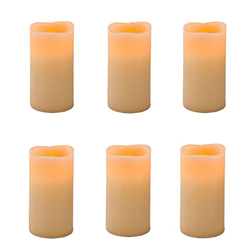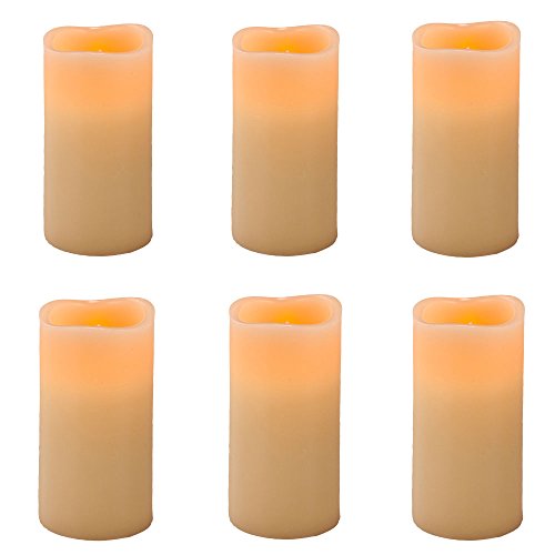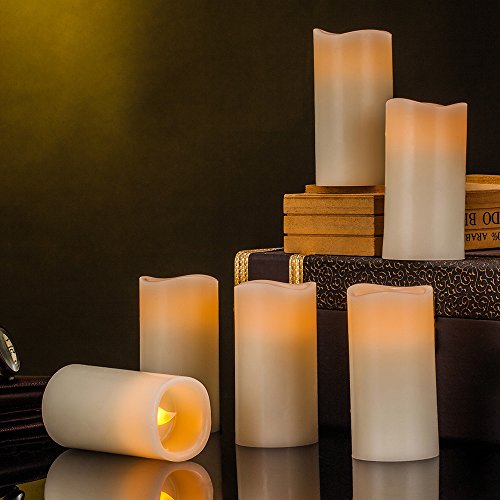 Studio : onlyhome Publisher : onlyhome Binding : Kitchen Product Description Real Flame-effect Candles These candles are so realistic that practically indistinguishable from traditional burning candles. Flame simulation technology makes the candles flicker, brings the most realistic experience to any room. Real Wax Elegant Design The candle shell is made from paraffin wax,however there is no burning wick, smoke or messy dripping wax. They are perfect for places like bookshelves and bedrooms. Smooth finish, classic ivory color and elegant design, use the Real Flame-effect Candles in locations where you would use real candles. Extended Lighting Time Powered by 2AA batteries (not included), the expected battery life is of approx. 200 hours (high-grade battery required). Package Include 6 x Flameless candles (Diameter: 2.2" x H 4) Note: 1. This candle is made of real wax and is flammable. Do not attempt to light this candle. 2. Keep out of direct sunlight, away from heat sources and out of extreme temperatures or your candle may soften or melt. 0
