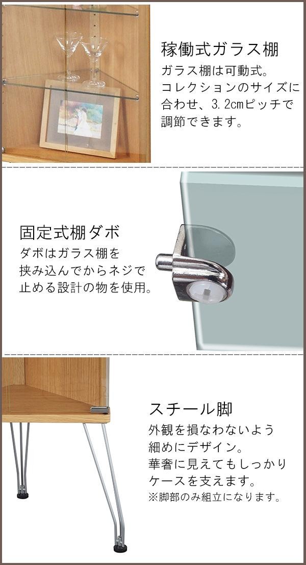 大切なコレクションが映える洗練されたデザインのケース。お部屋の角にぴったり納まり、空間をオシャレに有効活用できます。 |
