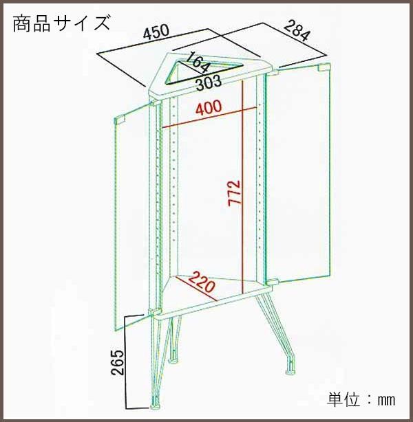 | サイズ | W450×D285×H1100mm 個装サイズ:34×52×88cm |