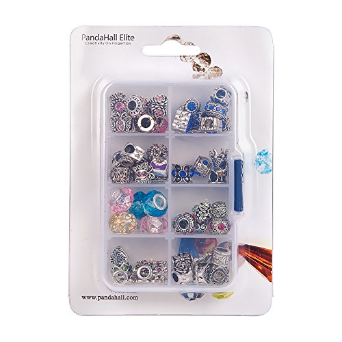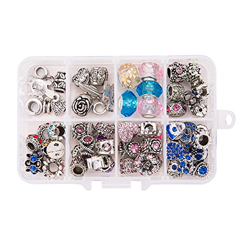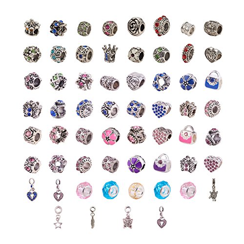 PandaHall Elite 60 Pcs Mix Colors Lots Red Blue Pink Purple Birthstone Beads Dangle Charms Sets fit for European Style Bracelets