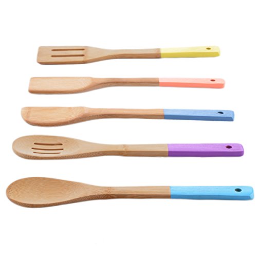 Studio : Heselian Publisher : Heselian Binding : Kitchen Product Description Durable and long lasting bamboo kitchen cooking utensils features benefits: premium 100% high quality moso bamboo kitchen cooking tools: strong and safe to use on hot surfaces and will not scratch non-stick surfaces. Less porous: last longer, and fewer spaces for the bacteria to get trapped compare with regular wood easy to hold: light weight and comfortable handles make these utensils quite easy to work with. Nice look: natural color and bamboo made make these utensils looks great in your kitchen. Suitable size for cooking: each spoon and spatula measuring 11.8". Easy to clean/care: just wash them with warm soapy water, dry thoroughly. 0