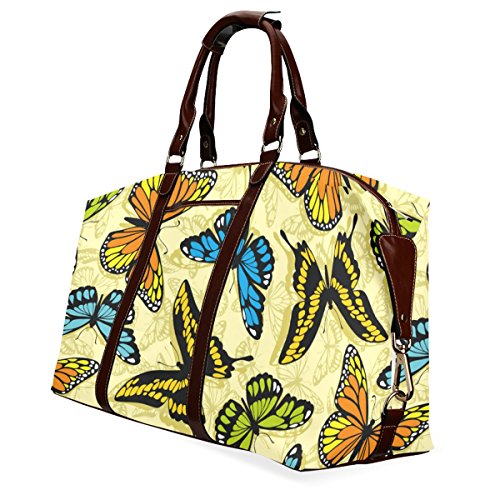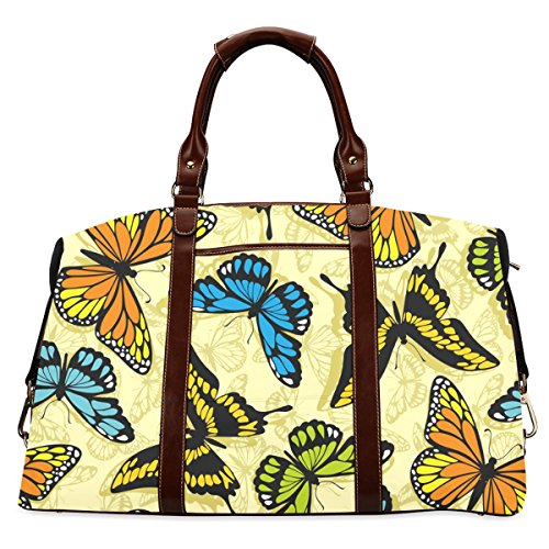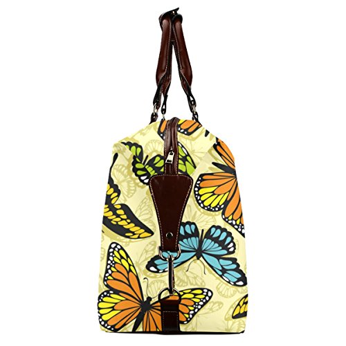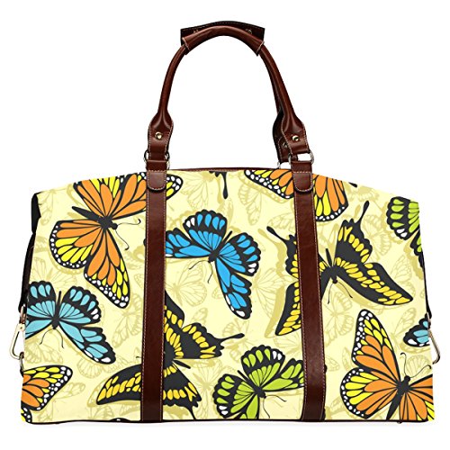 -. Brand : InterestPrint -. Color : Black -. Department : unisex-adult -. EAN : 4786660272167 -. Feature : 1.Material: Made from high-grade waterproof fabric, durable, water-resistant. / 2.Dimensions:20.87"(L) x 8.98"(W) x 14.02"(H) / 3.One main compartment, big enough to pack your clothes, cosmetics, books and etc. / 4.One interior pocket for small items. / 5.Excellent bag for travelling, business trip, going hiking, sport. -. PackageQuantity : 1 -. ProductGroup : Apparel -. ProductTypeName : LAGE -. Title : InterestPrint Butterfly Waterproof Fabric Classic Travel Duffel Bag (Large)