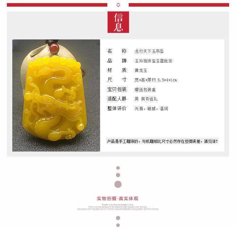 黄龙玉男款玉项链龙牌玉坠生肖龙玉挂件玉石玉器男士玉坠玉佩玉牌