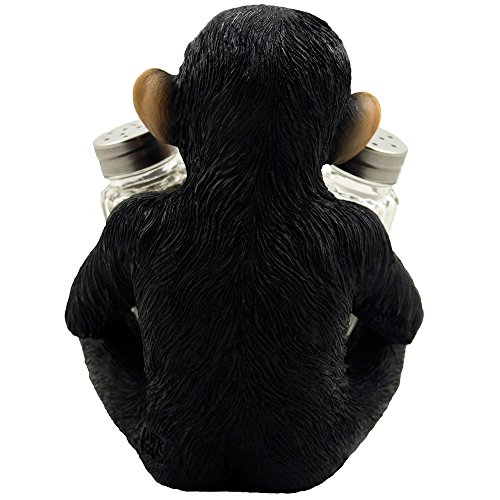 Decorative Monkey Glass Salt and Pepper Shaker Set with Holder Figurine for Tropical & African Jungle Safari Kitchen Table Decor Sculptures or Whimsical Chimp Statues As Gifts for Animal Lovers