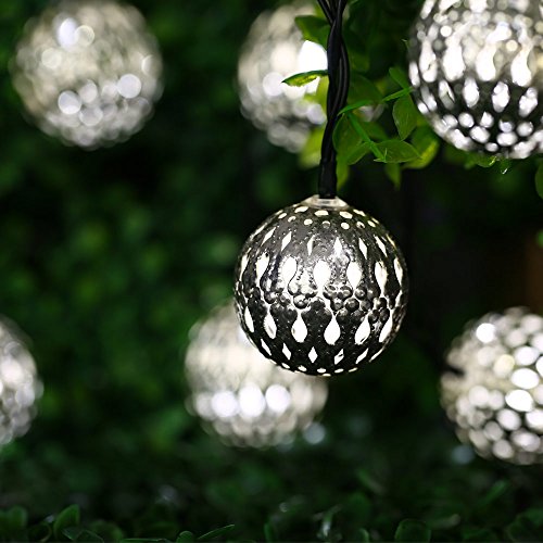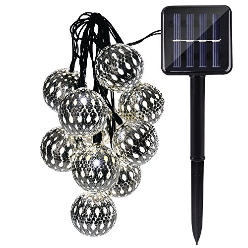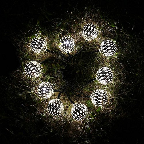 Icicle Solar Moroccan Ball String Lights, 11ft 10 LED Large-Size Globe Christmas Lights for Indoor/Outdoor Home, Patio, Lawn, Garden, Party, Holiday Decorations (Cool White)