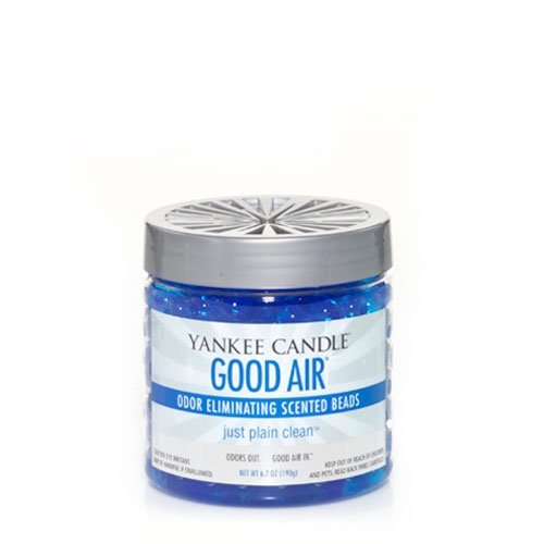 -. Feature : Yankee Candle Good Air / Odor Eliminating Scented Beads / "Just Plain Clean" Scent / Beads will leave any area smelling fresh, clean and odor free.