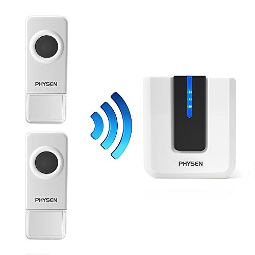 PHYSEN Europe Style Piano Waterproof Wireless Doorbell kit with 2 Push Buttons and 1 Plugin Receiver,1000ft Range,4 Volume Levels and 52 Melodies Chimes,No Battery Required for Receiver