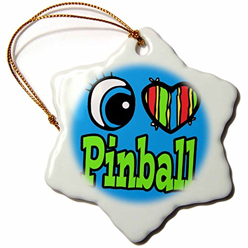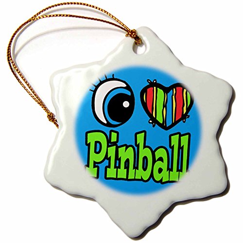 3dRose orn_106390_1 Bright Eye Heart I Love Pinball-Snowflake Ornament, Porcelain, 3-Inch