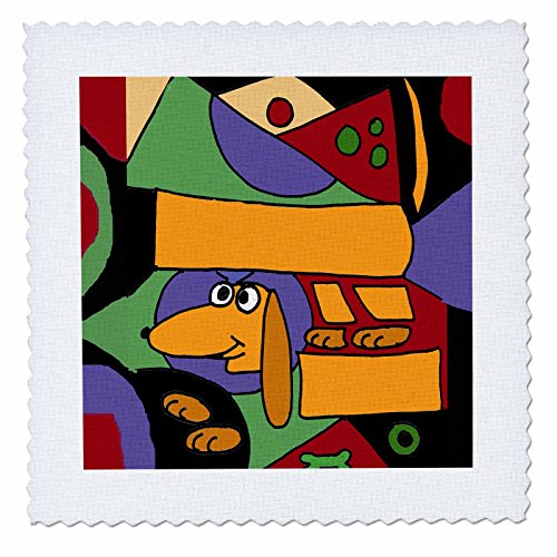 3dRose Funny Dachshund Art Abstract - Quilt Square, 6 by 6-Inch (qs_195222_2)