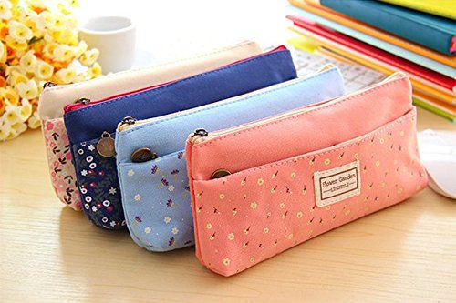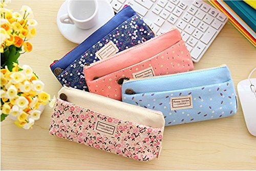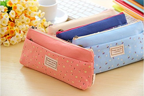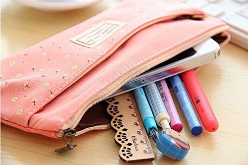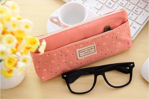Pastoral Pure Fresh Small Broken Flower Pencil Case Double Zipper Pencil Case Stationery Bag Receive Bag (Pink)