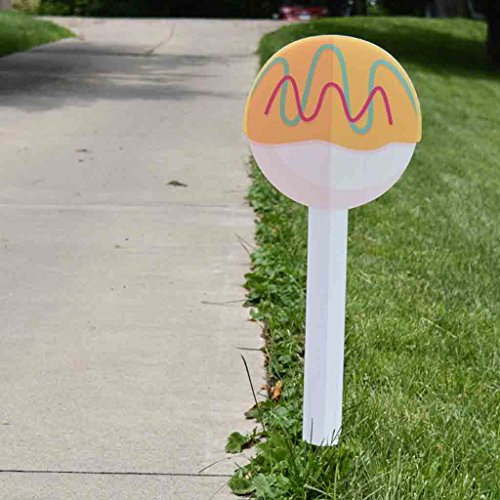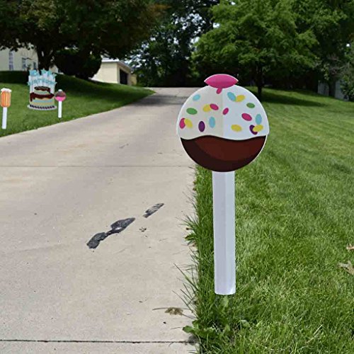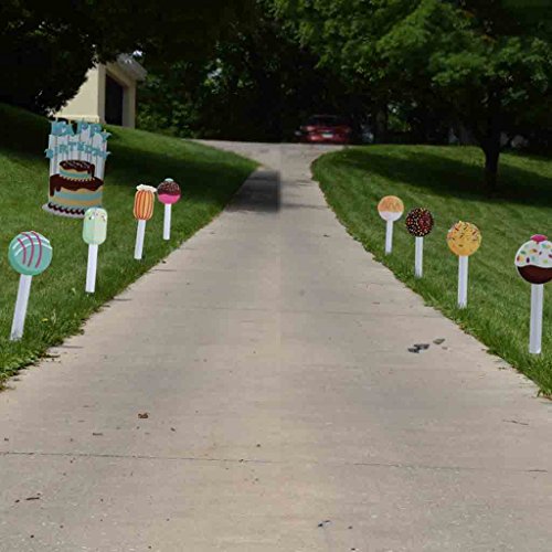 Studio : VictoryStore Publisher : VictoryStore Product Description Each Birthday Cake Decoration is printed in full digital color on outdoor corrugated plastic. Collection of 9 shapes. 2 short stakes for each shape; except the cake which has 4 short stakes. Each shapes cut from corrugated plastic, not cardboard! Approximate Size: Cake Pops- 25"H x 10"W, Birthday Cake -46"H x 33"W. Made from flat plastic, not 3D. 0