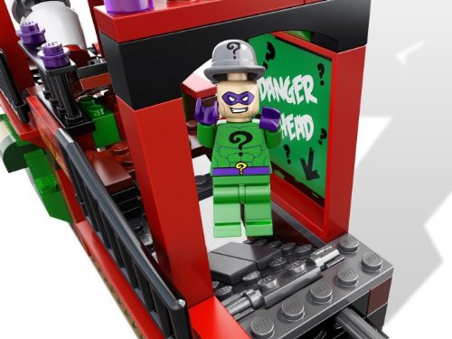 - Feature : Includes 5 minifigures: Batman, Robin, The Joker, The Riddler and Harley Quinn / Features Batcycle and funhouse / Funhouse features wagon rails, crane, hammer, opening trap door and moving floor / Lift the crane! Move the floor! Includes comic book! / Funhouse measures over 8" (21 cm) tall and 11" (29cm) wide, Batcycle measures over 4" (10 cm) long