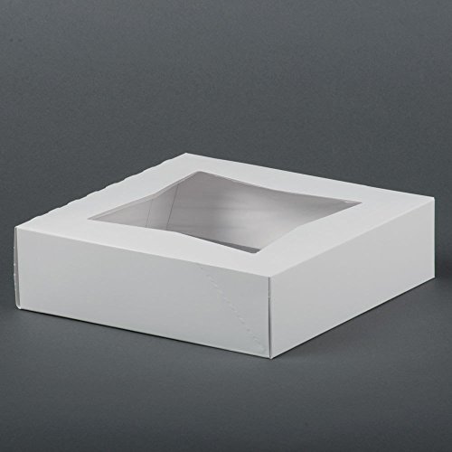 25 count WHITE Auto-Popup 9" x 9" x 2.5" Window Bakery Box w/Signature Party Picks