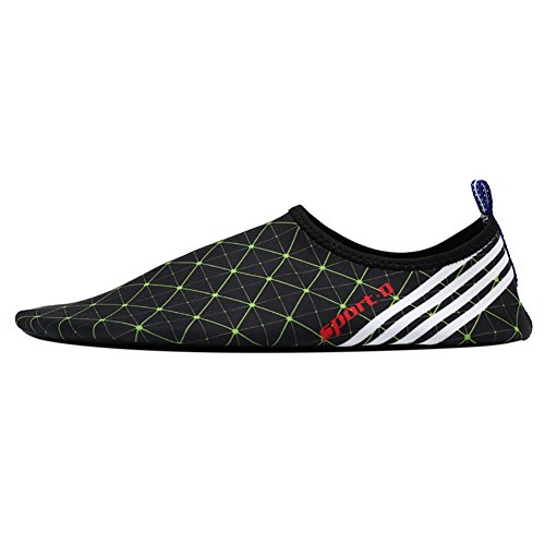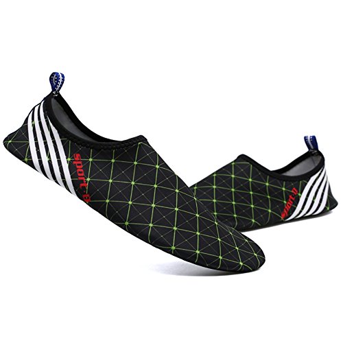 Studio : Wingbind Publisher : Wingbind Binding : Misc. Product Description Size chart: Please refer to the size chart before you purchase,thanks for your understanding! M--US size:5.5-6.5-Length238mm(9.29in) L--US size:6.5-7---Length250mm(9.75in) XL-US size:8-9-----Length260mm(10.14in) 2XLUS size:9.5-10.5Length270mm(10.53in) 3XLUS size:11-12---Length280mm(10.92in) Details: Striped Water Shoes Material:92% polyester 8% spandex(very flexible,very strenchy) Color:blue,green/black,red/black Size:M,L,XL,2XL,3XL Advantages: Great fit:Perfect for your foot,when you are running,it wont slip off easy,take wll to the shape of your feet. Good quality:Light and easy to take away,just put it in your bag,and enjoy your vacation! Fetures:comfy,lightweight,fit you feet,stylish,good quality,flexible.non slip off or slide around. Occassion:Beach, swimming, pool, weight training,gym shower,wake-boarding, sailing, boating, cycling, jogging, walking, fishing, beach volleyball, gardening, lawn, car-washing and driving, surf, scuba, snorkeling, beach walking, yoga, weatherboarding, kayaking, windsurfing, fin socks, shower, bathroom and etc