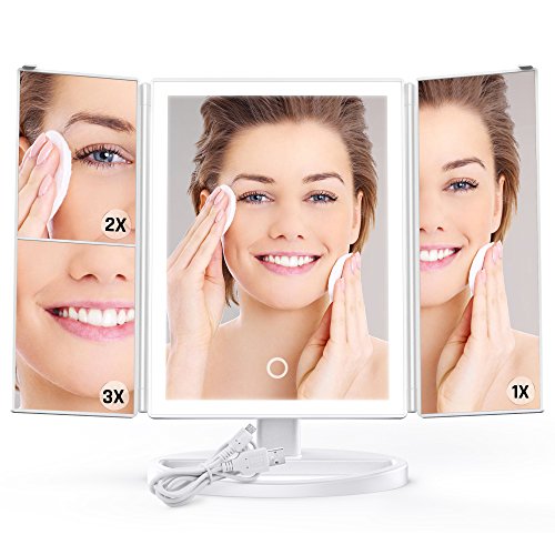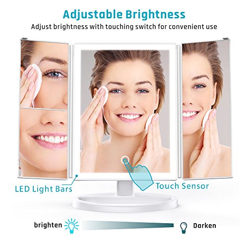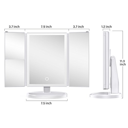 【Tri-fold 3 Panels】The led vanity mirror with 1X/2X/3X magnification provides wide-angle viewing for you to see features on your face clearly, convenient for daily facial care like makeup, tweezing or shaving.