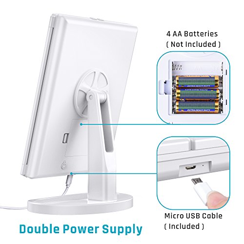 【Double Power Supply】The LED makeup mirror support USB charging ( micro useb cable included ) or 4 AAA batteries ( not included )