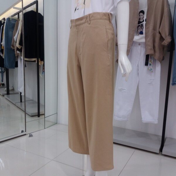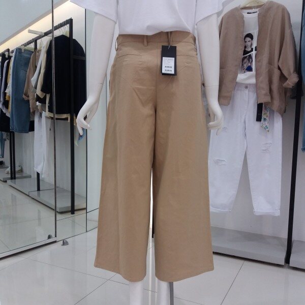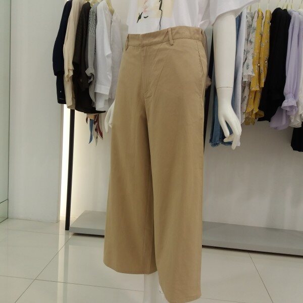 NICE CLAUP, 군더더기없이 심플한 디자인으로 차분하여 포멀한 분위기를 연출하는 면와이드팬츠입니다