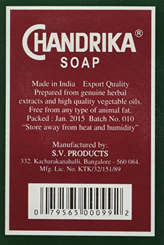 -. Binding : Health and Beauty -. Brand : Chandrika -. EAN : 0885217545489 -. Feature : Chandrika puts nature to work at caring for your skin / It does not contain any animal fat. / Has been trusted by millions of people for sixty years now -. Label : CHANDRIKA -. Manufacturer : CHANDRIKA -. MPN : 079565000992 -. PackageQuantity : 1 -. PartNumber : 079565000992 -. ProductGroup : Beauty -. ProductTypeName : HEALTH_PERSONAL_CARE -. Publisher : CHANDRIKA -. Studio : CHANDRIKA -. Title : Chandrika Chandrika Bar Soap 75 grams(pack of 10) -. UPC : 885217545489