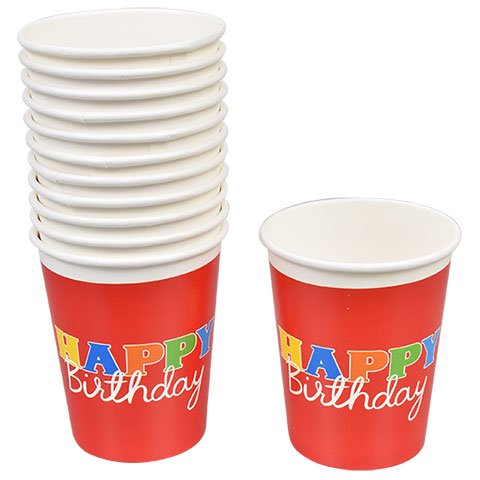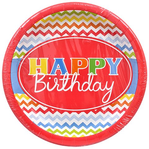 PartyDeiz Happy Birthday Theme Colorful Bundle (18 Paper Plates, 12 Cups, 20 Napkins)
