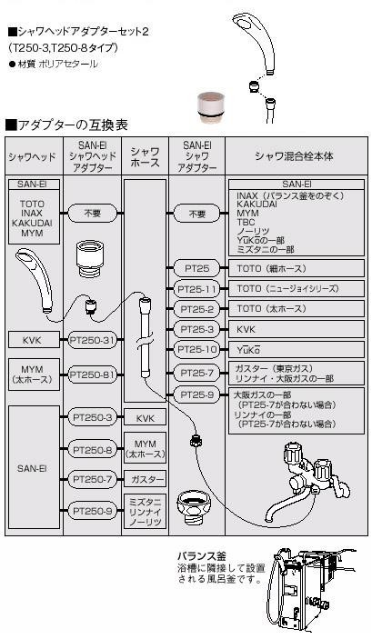 付属品シャワーヘッド用アダプター:2個(T250-3、T-250-8)